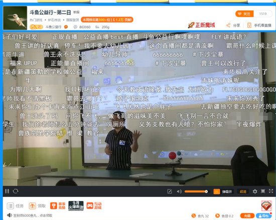 据悉,斗鱼自2016年就开始以“直播+公益”的形式助力公益事业发展,公益主题也涉及环境、扶贫、志愿者等多个方面,此次“网红主播+支教老师”的形式深入课堂,在网上同样引起了强烈反响,斗鱼直播也有计划将支教行活动做成持续性的公益行为,更频繁的展开主播支教,让更多人通过直播平台认识支教,鼓励更多的人参与其中,给予偏远地区的孩子们更多的支持。