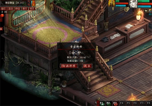 动静相宜、劳逸适度,方为求学之道。活动期间,昌黎先生在学宫开辟多处静室,诸位玩家可前往长安酒楼,通过NPC“学宫掌令/昌黎先生”,进入禅修静室场景进行禅修,每六分钟可进行1次,每天可禅修40次,每次均可获得经验奖励。此外,还可选择小憩悟道或者焚香潜修(每次消耗1通宝),后者获得的经验奖励是前者的3倍。
