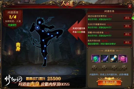 第一种方式:跟随主线优先完成问道任务,在《修仙记》中,问道系列任务有四个阶段,分别是人道、地道、天道、仙道,每一个阶段的任务完成都能获得大量的经验。