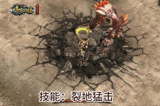 技能——裂地猛击:范围魔法攻击,BOSS以拳砸地发起强烈地上冲气流,造成超高伤害,并有极大几率击晕目标。