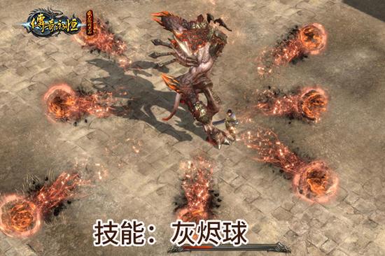 技能——灰烬球:范围魔法攻击,从BOSS体内飞出多个灰烬球,对周围造成范围伤害,该技能在BOSS的血量降到一定数值后触发。