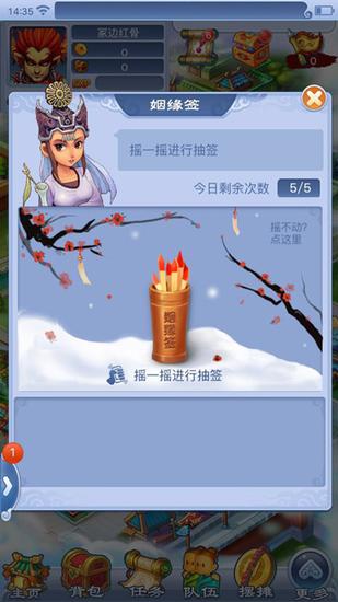 “姻缘签”每日可摇签5次,每日00:00刷新参与次数。活跃度每增加100均可获得额外1次参与机会。解签消耗50精力,必得丰富奖励。