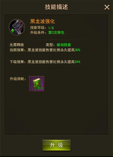 角色达到二次转生即可开启技能升级功能。值得注意的是,在满足升级条件后,玩家需要消耗一定技能书,才能对满足条件的技能进行升级,冒险者可以通过荣誉商店、拍卖行、职业商店获得所需技能书秘籍。