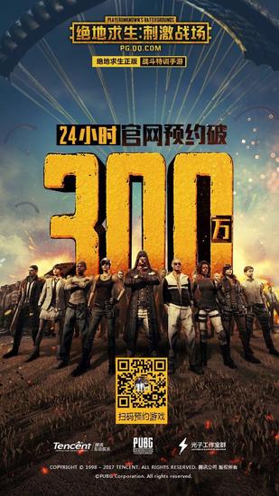 而游戏预约官网上线后,仅24小时预约量便突破300万大关,玩家在表现出对《绝地求生:刺激战场》抱有极大期待的同时,也纷纷对这款正版吃鸡手游能否如期成为吃鸡游戏市场上的头部产品表示肯定。