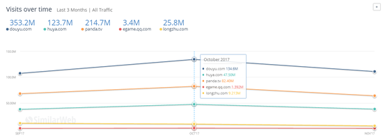 从近三个月的游戏直播网站访问量可以看出,各平台网站流量已经持续很久没有较大变化,甚至开始出现PC端向移动端转移的趋势,移动直播APP成为新的直播增量的关键核心。