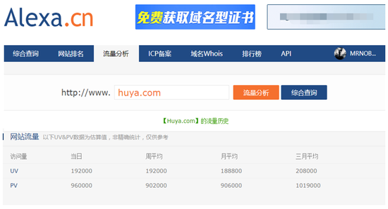 *Alexa官方虎牙直播流量数据,截止至12月12日