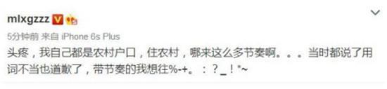 事后,MLXG针对自己的不当言论在微博上道了歉。