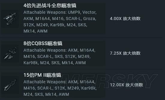 倍镜。倍镜可谓是吃鸡中十分重要的东西,尤其是在新地图那光秃秃的地表衬托下,没个四倍镜都不好意思出门,只能躲在房子里瞎溜达。不过15倍镜有很多人都不选择,因为很难得驾驭。