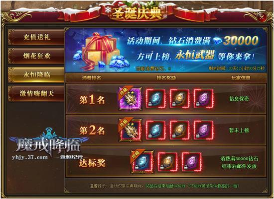 37《永恒纪元》页游版的第三活动福利为永恒降临,在当天玩家消费达到30000钻石,即可获得达标获得奖励(足迹印记+腕甲印记+封灵印记),若消费钻石达到全服前2名,还可以获得前2名的奖励。奖励只能获得最高一档奖励喔!而且是活动结束后通过邮件发放。