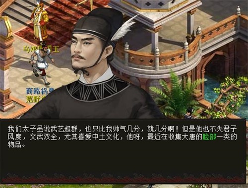 大唐盛世,经济繁盛,物产丰富。诸位玩家可使用任务道具栏中的“拜帖”领取任务,前往宝象国、女儿国、乌鸡国等地拜访诸位国王和当地民众,打探西域各国贵客心仪的大唐物产,好备下礼物,互通交好。按照指引,与指定NPC对话后可获得一个关键词,并在最后一环根据关键词猜出所需要的目标物产,即可获得额外经验和物品奖励。