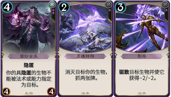 黑色增强了隐匿流(这个犹抱琵琶半遮面的小姐姐会成为隐匿流KEY牌无疑),并增加过牌手段,还多了驱散手段