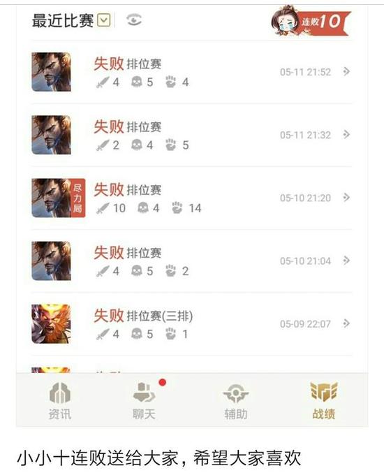 十连败不可怕,可怕的是你五连败的时候还去排位,那个时候自己都打的和演员一样。总之,连赢5局或者连输5局都不要打了,除非你有实力,记住匹配机制会增加你的游戏难度。