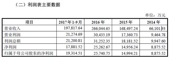 文件显示,2014年、2015年、2016年和2017年1-9月,蜗牛数字的营业收入分别为6.61亿元、16.85亿元、26.60亿元和19.78亿元,净利润分别为8875.52万元、1.50亿元、2.53亿元和1.79亿元。