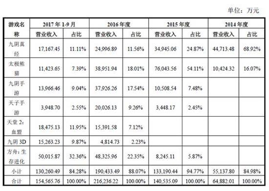 截至目前,《九阴真经》、《太极熊猫》、《九阴手游》、《天子手游》、《方舟:生存进化》、《九阴3D》及《天堂2:血盟》等7款游戏构成了蜗牛数字报告期内主营业务收入的主要部分。