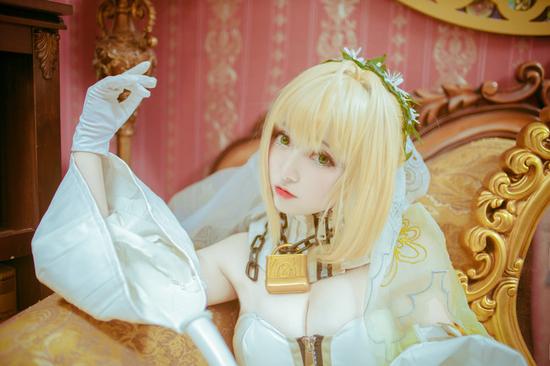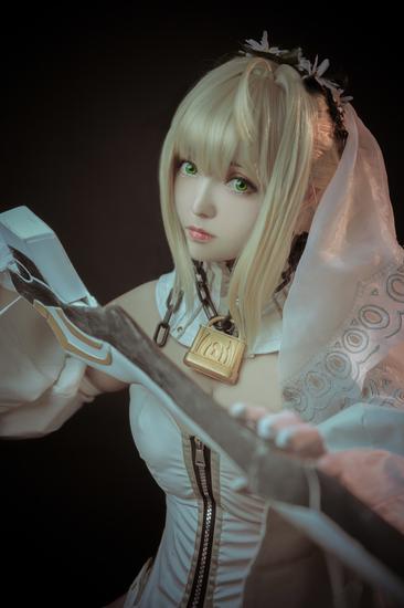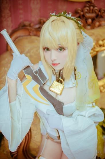 游戏《Fate/extra ccc》中登场角色与前作《Fate/extra》中的红Saber均为同一人,不过服装从原来的红色男装改为了白色的新娘装。除了服装的改变之外,所持的剑陨铁之鞴也由深红变为灰色。今天呆萌萝莉COS的尼禄更为清纯可爱,一起来看下吧!