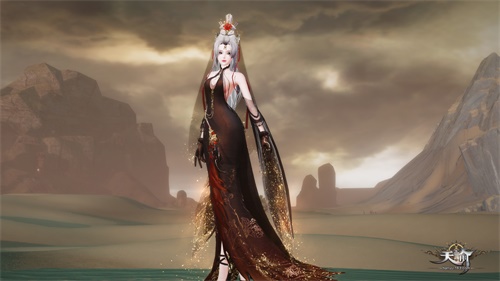女款的春节时装在设计上,充分融合了传统之美与时尚元素,薄纱质感的连身长裙,有着仙家衣裳般的飘逸,而神秘的黑色搭配裙摆金色粉尘特效,更是将角色的气质,衬托的完美无缺。精致的鎏金发饰,则将古风柔美和现代工艺充分结合,突出了人物的高贵大气,而那一抹惊艳的绛色点缀,则是整套时装的点睛之笔,含蓄地将这一抹热情的中国红,藏于低调华丽的黑色长裙之中,不仅增加长裙的层次感,更是将我国传统文化中的含蓄之美,体现得淋漓尽致。