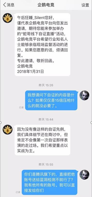 早前大佬午后狂睡就在微博曝出企鹅电竞对此次自证,向他本人发出邀请,但他回应何必自证,真的想要证明,所有账号拿去检测就可以。