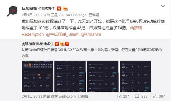 之前的装机过程小编也就不不再复述,正式自证开始大约到6点多,蛇哥落在地成盒几次后,表示自己“热身完毕”,可以开始自证。第一局,干净利落,11杀吃鸡,让人惊呼“蛇哥无敌!蛇哥牛逼“,但细心地玩家在看到结束时他使用的账号之后,去官方查证了一下这账号的分段。这一查,可真是查了个天崩地裂,紧接着微博也有相关图片曝出。