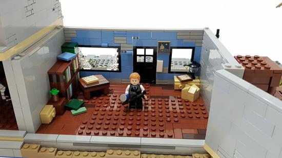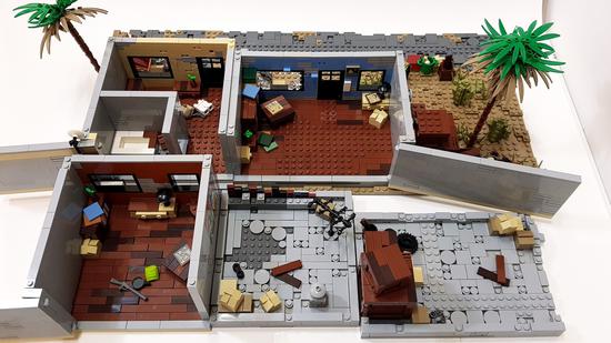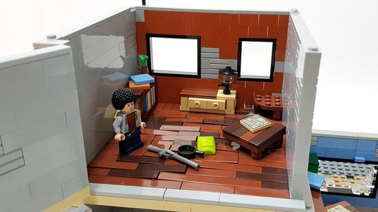 不仅如此,房屋内部也别有洞天,这位玩家为屋内设计了房间,并摆放了各式家具,某些地方还能看到有头盔和武器的补给。如此精美的场景,配上几名乐高小人,真的能玩上一整天。