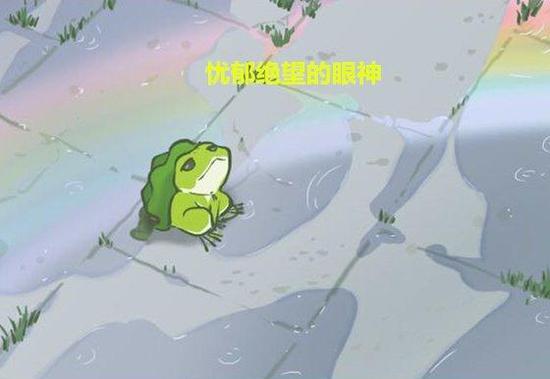 旅途中难免会遇到忧郁、绝望。明信片中呱娃子在雨中忧郁绝望地看着天空,此情此景,不禁让人想起这个社会,有多少人会像这只青蛙一样,有时候会有这种表情。
