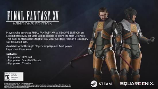 5月1日前在Steam上购买《最终幻想15》的玩家将有资格获得半条命资料包。这个资料包含有戈登·弗里曼传奇套装,玩家可以化身戈登·弗里曼登场。