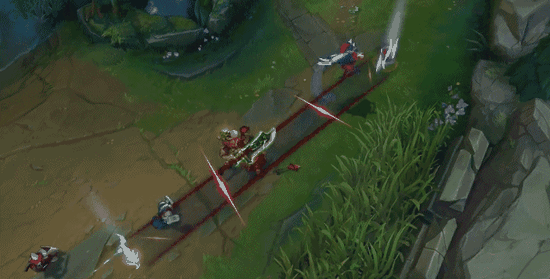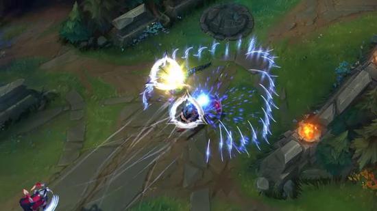 可以明显的看出刀妹的技能跟飞刀关联性变得非常大,漫天飞刀,而且似乎这些飞刀的数量跟技能有关,甚至还有了类似赵信大招一样的阻拦敌方飞行道具的技能。