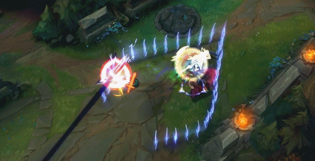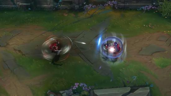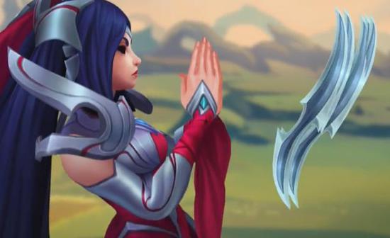 在动态图里我们可以看出那个漫天的刀阵可能就是大招了,而击杀英雄或者小兵能重置Q技能的状态似乎没有变,格挡敌方飞行道具技能的似乎是W技能,而E技能似乎丢一条直线,让刀妹可以迅速标记目标然后用Q技能突进。