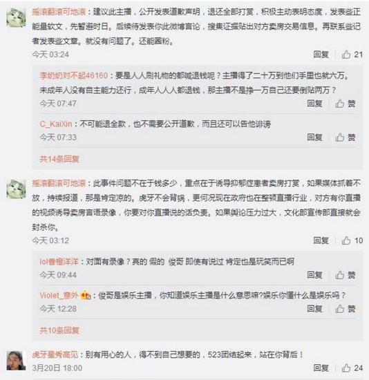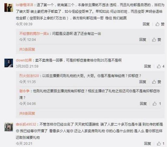 不过在微博底下, 有不少人仍然对骚俊的这一表态质疑, 认为骚俊应该退还礼物的钱并公开道歉,但也有一些骚俊粉丝认为都是成年人了,应该对自己的行为负责,包括为主播送礼物的行为。大家觉得, 骚俊该返钱吗?