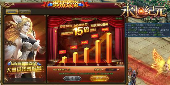 另外,37《永恒纪元》页游版的升级投资则是在升级投资中,可根据自身喜好选择不同的投资金额,投资金额越多,绑钻返回越给力。