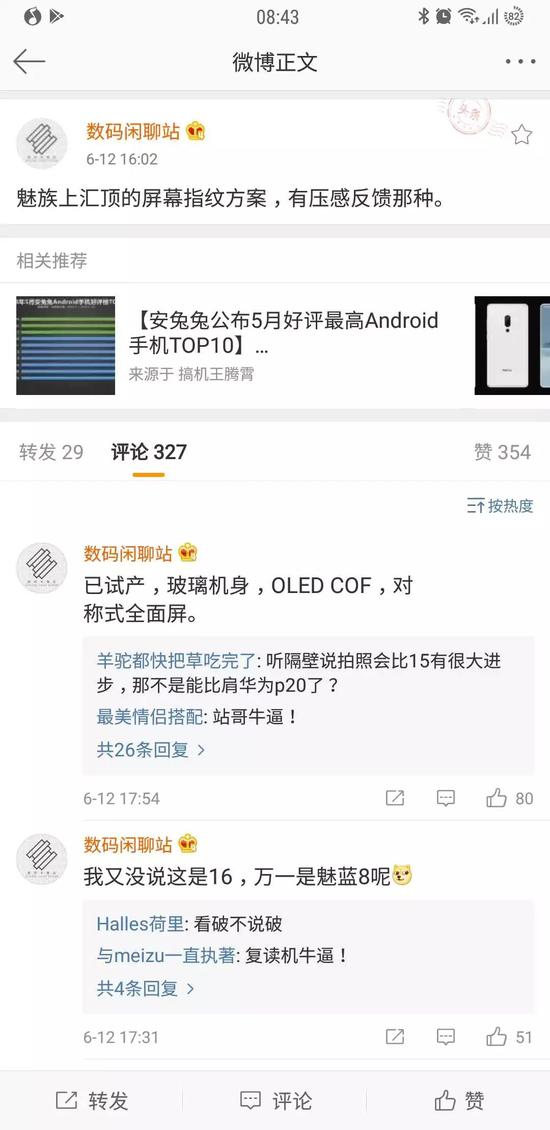 日前,魅族 16 迎来了一次比较详细的曝光。根据@数码闲聊站 和@摩卡RQ 等多个知名微博数码博主的消息,魅族 16 将会是目前为止颜值、配置等各方面最好的魅族手机。