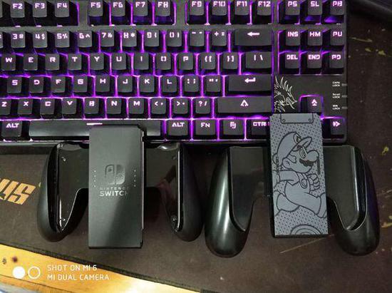 这玩意可以很好地解决这个问题·····这个改良版的“狗头”支架可以完美的解决充电的问题,而且充电接口还是跟switch同样的tpye-c接口。更妙的是,这玩意还内置1800毫安的电池,可以大大增加JC手柄的电量·····