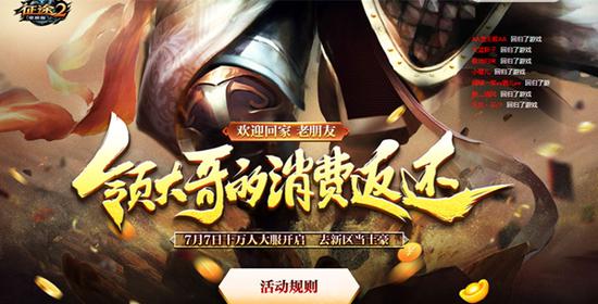 嘉年华专属激情新区“十万大服一区、十万大服二区”荣耀起航,新区福利重磅升级,领大哥消费返最高20万元、双倍64包、老史红包雨、冲15星不爆星满灵魂传家宝、预约礼包、哈雷摩托实物抽奖……人人有礼,新区和老区玩家瓜分3亿福利!