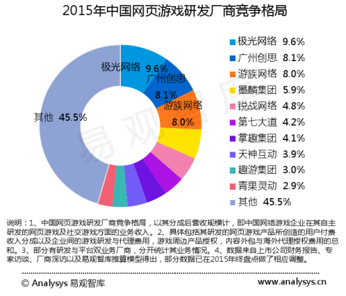 也正是由于对细节的执着,赢得市场的认可。2015年年底,在易观智库公布的《中国互联网产业2015趋势盘点》数据中,极光网络凭借自研产品良好的市场表现,以9.6%的市场份额,成了页游研发领域的行业第一。