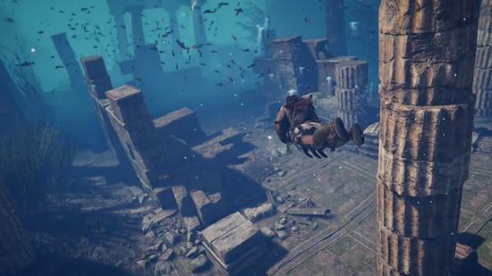 视频中我们也注意到玩家可以潜入水中,探索寻宝。
