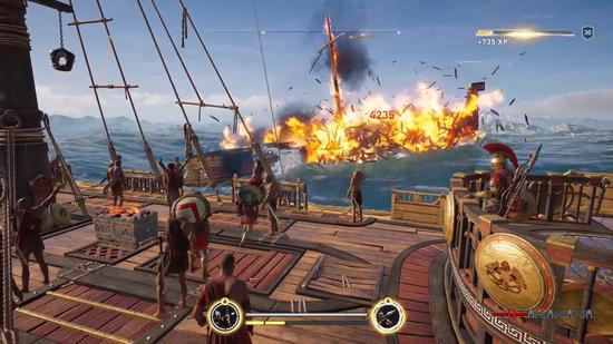 由于当时还没有火炮,因此《刺客信条:奥德赛》的海战由标枪和弓箭取代,这意味着本作的海战更加注重于近距离战斗。