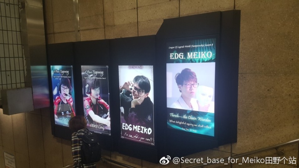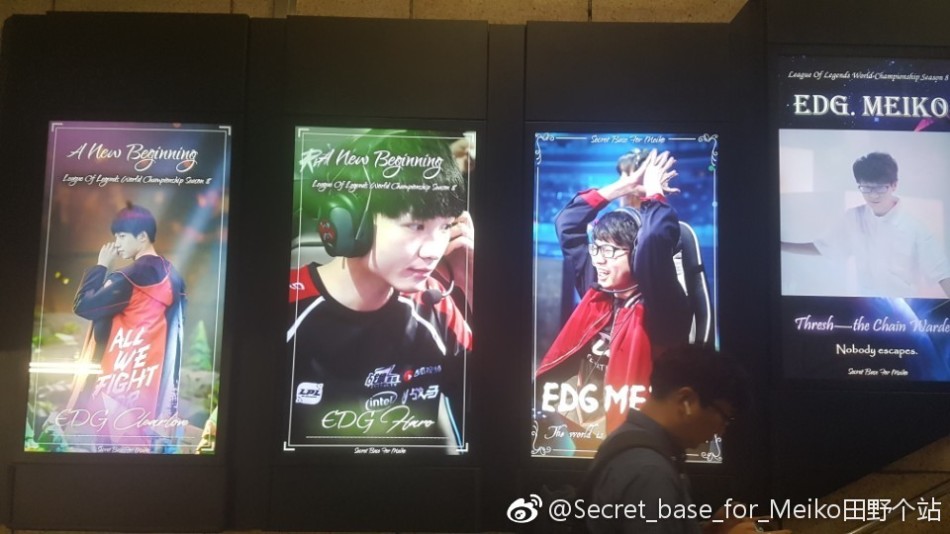 EDG在预选赛中突出重围,获得了LPL赛区最后一张通往世界赛的门票,粉丝也超级给力,为EDG承包了首尔明洞的大楼及地铁广告屏!EDG全球总决赛加油!
