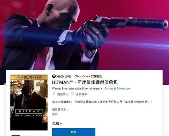 为了庆祝《杀手2》的上市,Xbox One版《杀手6》年度传奇版开启了免费领取活动,原价312港币(约合人民币277元)。只要登录账号即可领取。
