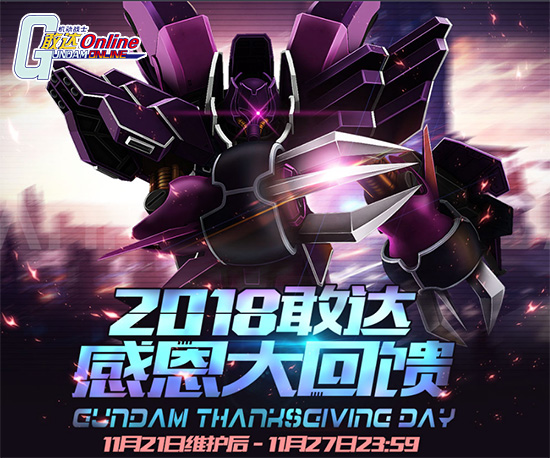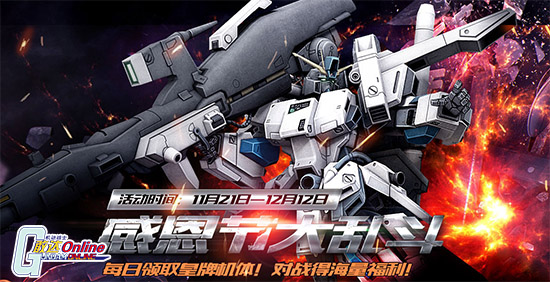 在此,《机动战士敢达OL》为各位新老玩家带来2018年感恩节活动,2018年11月21日至27日活动期间,热门机体点击就送,强化券等其他奖品更是拿到手软。