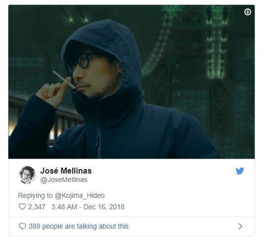 我们可以看到在原图中,小岛秀夫手持香烟,身着兜帽服站在吊桥边,但对于熟悉MGS的粉丝来说,这就不是一副照片这么简单的内容了,这座桥是乔治·华盛顿大桥,也就是MGS2开始的地方,而当时主角Solid Snake也曾抽着烟走过。推特用户@JoseMellinas注意到了这一点,并简单的PS了一下进行还原。