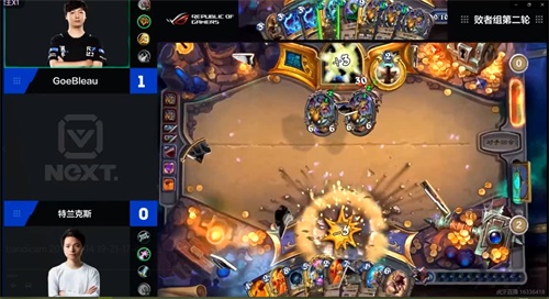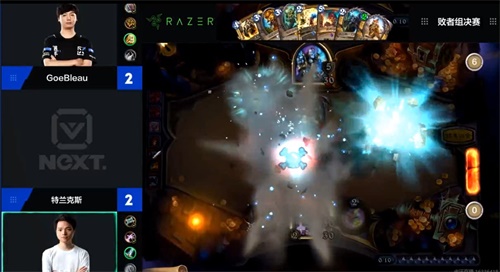第三局比赛中,LP丶特兰克斯使用控制术士迎战GoeBleau的天启奶骑,GoeBleau在疲劳阶段无法处理对手DK复活的大量恶魔,打出GG,比分来到了2比1。