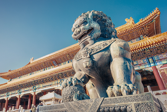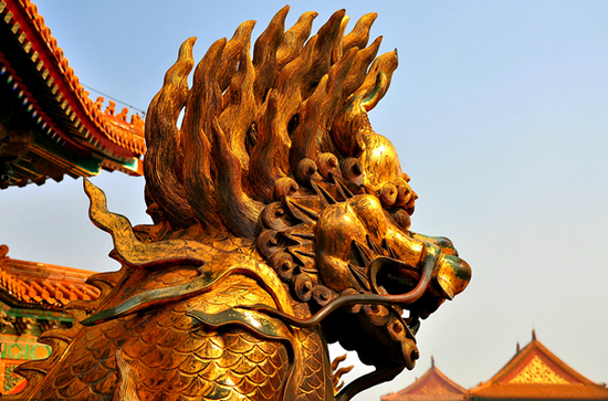 中国的狮雕从古至今一直都是作为压邪镇魔的瑞兽、佛教鼎盛时还充当护法的灵兽,狮子含有兆示祥瑞的内涵,经常被视为荫庇、致福人们的降福灵兽。另外,从北京故宫博物院多处出现祥狮来看,它是这次跟宠原型的几率非常大。太和殿上成双成对的铜狮子,象征权力无边和子嗣昌盛,乾清门前的鎏金铜狮彰显皇家的威严和奢华。跟宠剪影上脚踏球的威武形象,会不会就是以祥狮为原型呢?