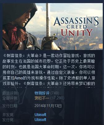 从4月16日开始,《刺客信条:大革命》在Steam上获得了将近800条新评价,其中大多数都是好评。