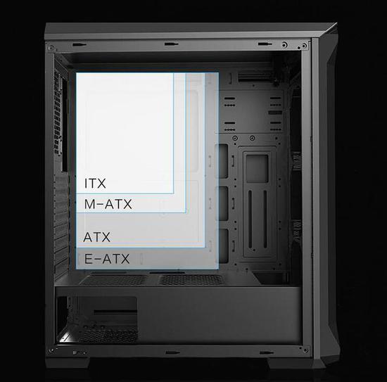 新的先马坦克3三围尺寸为447*220*510,对比老款更高更宽。先马坦克3采用分仓式设计,抛弃了过时的光驱位,内部空间更为充裕,空间最大支持E-ATX主板,PCIE槽位进化到了8槽,能够实现最高4卡交火。