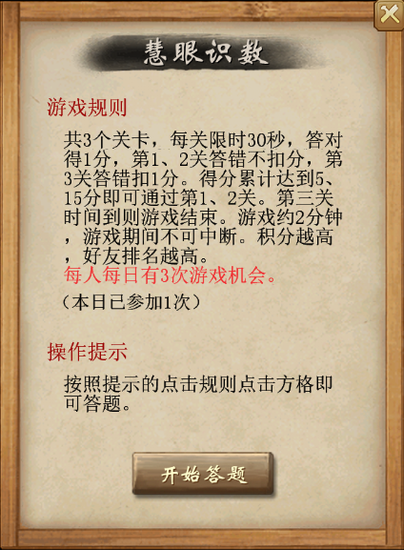 优秀的细作要有超群的自我掩护能力,学会用虚假的身份生活,过人的记忆力和演技是必备的技能。因此,唐王特令礼部官员于城中举办“潜伏试炼”, 每天试炼次数不限,根据当天最好成绩发放奖励。