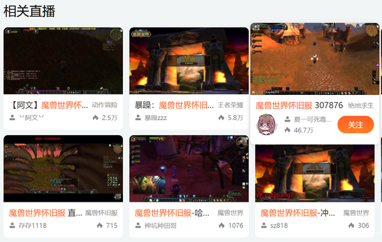 所以今天当你打开微博搜索《魔兽世界》的时候,你会发现很多都是排队的截图,在排队如此可怕的情况之下,选择观看直播反而不用排队,比如夏一可在斗鱼直播《魔兽世界》怀旧服的实况,观看人数就达到了46.7万。