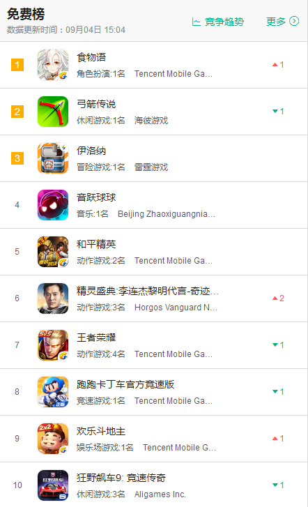 免费榜前十排名(截至发稿:9月4日):