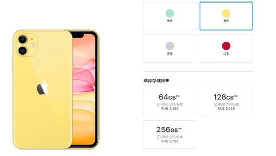 iPhone 11国行的价格:64GB版5499元、128GB版5999元和256GB版6799元;