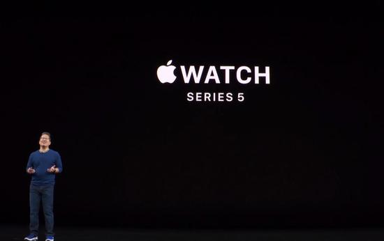 苹果发布会上推出的第二款硬件产品是新一代苹果手表——Apple Watch 5系列,苹果继续加强苹果手表的健康监测能力,提供了更专业的功能,多次强调关键时刻苹果手表能救命,售价399美元起。