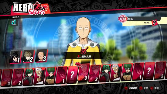 与许多经典格斗游戏一样,本作也采用3v3的战斗机制,不过因为有琦玉老师这样的BUG级别角色存在,为了保留他的“一拳秒了”设定,所以游戏的一些机制被设计得与众不同。