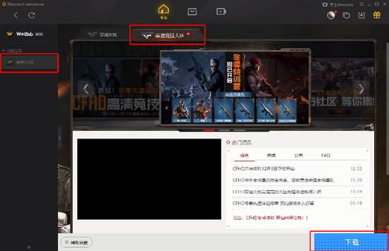 已获取资格的玩家,可通过CFHD官网或WeGame两种方式下载CFHD客户端——登陆CFHD官网首页直接进入下载页面,或开启WeGame下载《穿越火线》,选择高清竞技大区选项,都可下载本次先锋体验客户端。